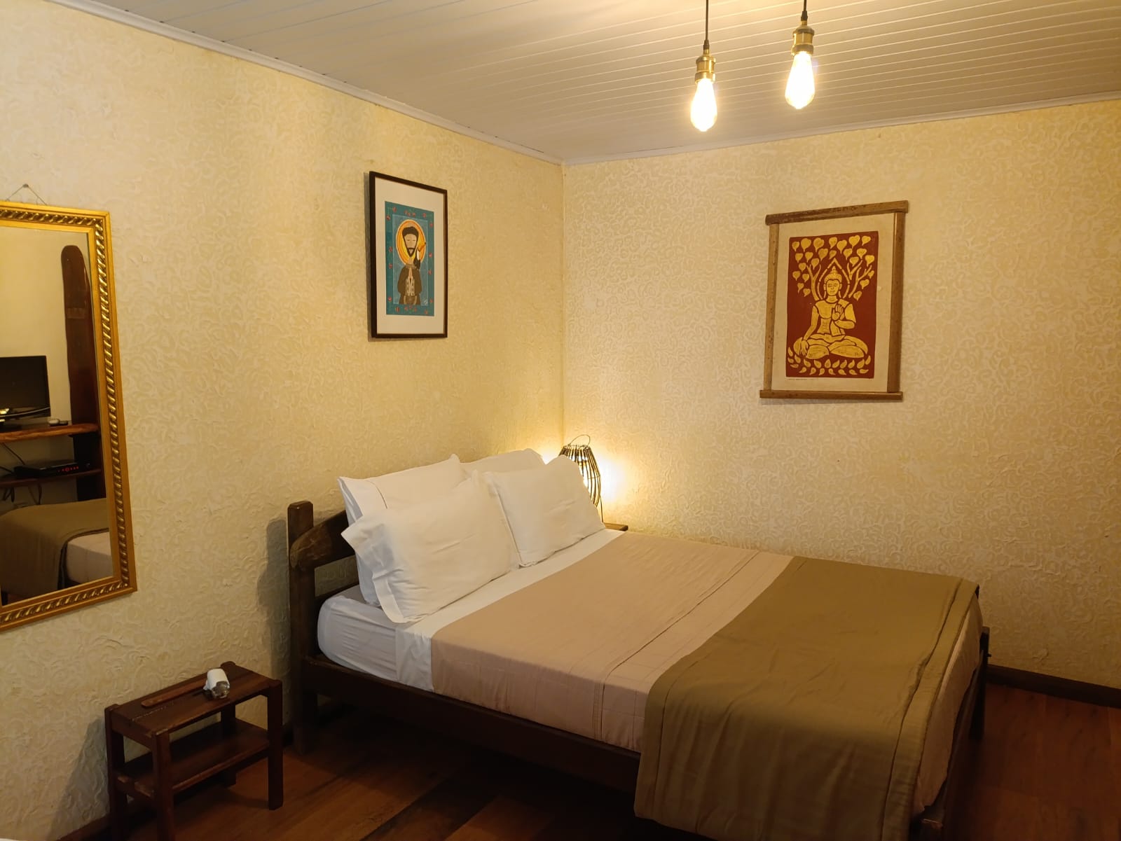 Suite Paraíso Quartzo Rosa estilo indiano com TV sky , cama de casal, frigobar, ar condicionado e varanda....